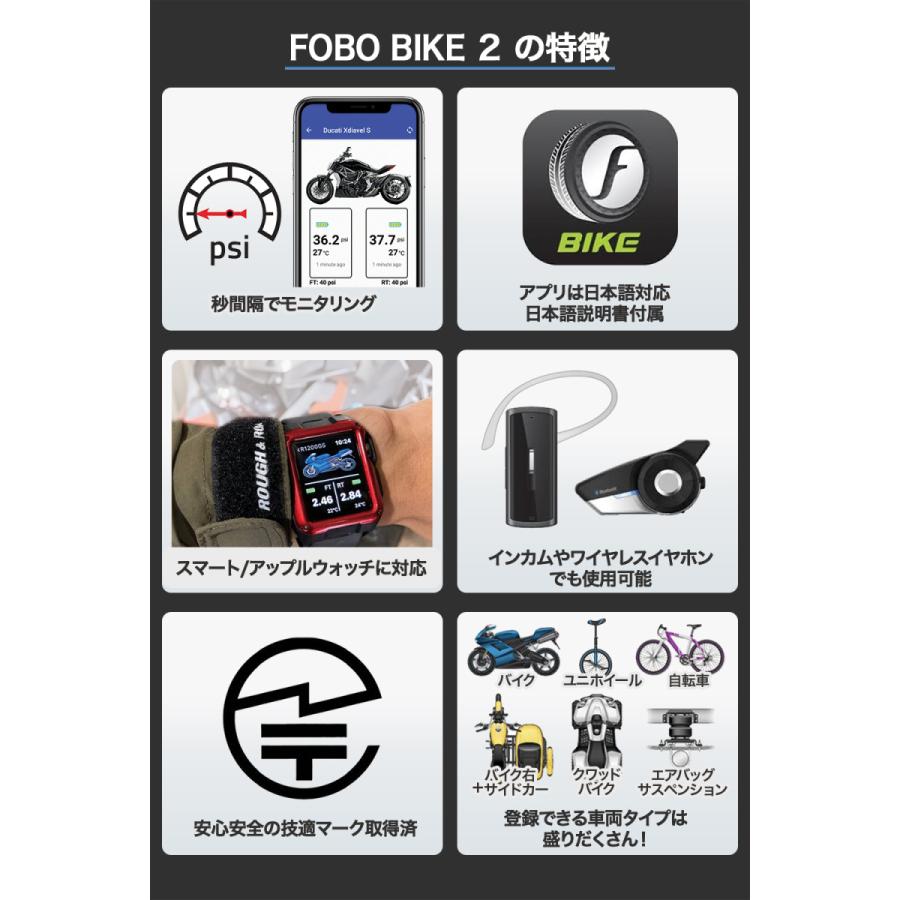 FOBO Bike 2 TPMS 空気圧センサー バイク トライク 三輪用スマホでチェック タイヤ空気圧監視システム 取付簡単 防水 技適取得 日本語説明書付属1年間
