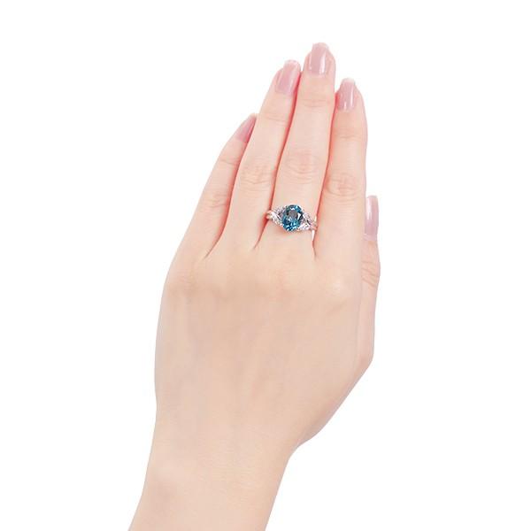 大粒のブルートパーズが華やかなリング。落ち着きのある深いブルーは上品な存在感があり、クールな中にも女性らしさ溢れる印象を感